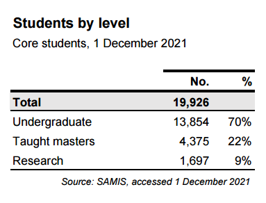 而巴斯大学,21年官方统计显示硕士在读人数总数才6千多人,全校一共不到2万名学生。